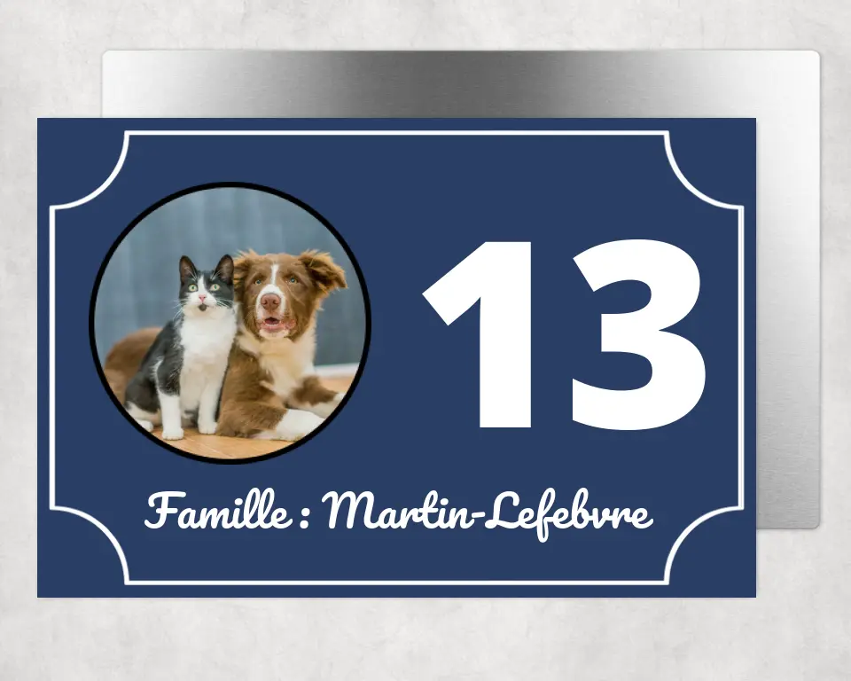 Découvrez notre plaque de porte en métal, une façon élégante et durable d'ajouter une touche personnalisée à votre espace, mettant en vedette votre design préféré, y compris des motifs d'animaux. Elle peut être placée en intérieur sur une porte comme en extérieur sur un portail ou un bâtiment. Personnalisable, vous pourrez y faire figurer chien, chat, rongeur ou tout autre animal considéré comme votre plus fidèle compagnon.