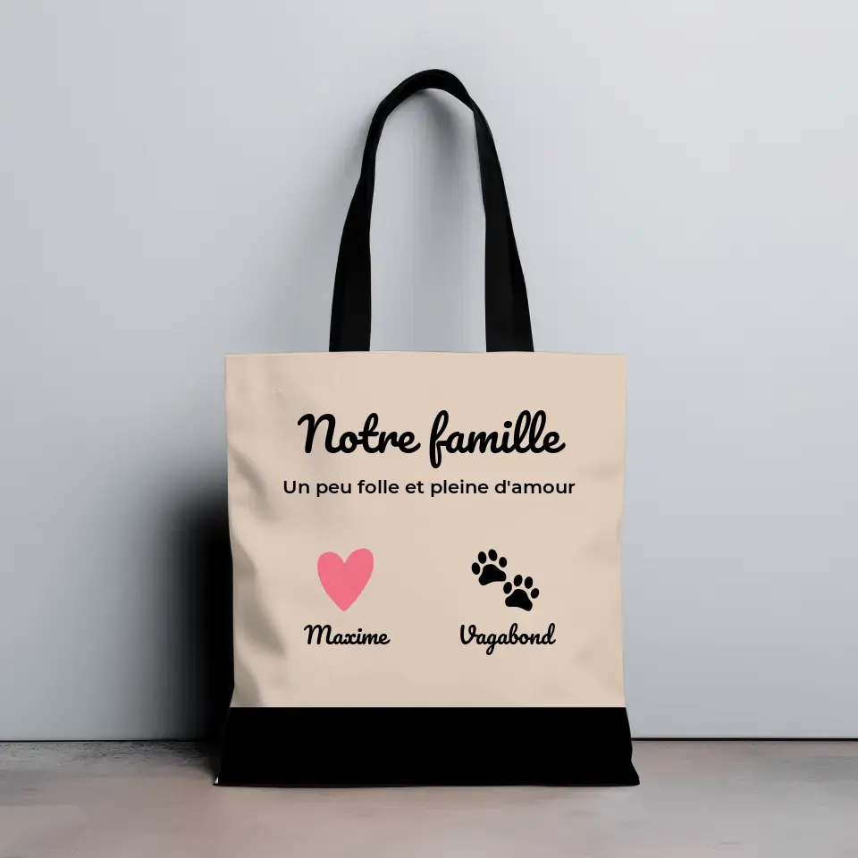 Notre famille un peu folle et pleine d'amour avec coeur ou empreintes- Totebag Personnalisé